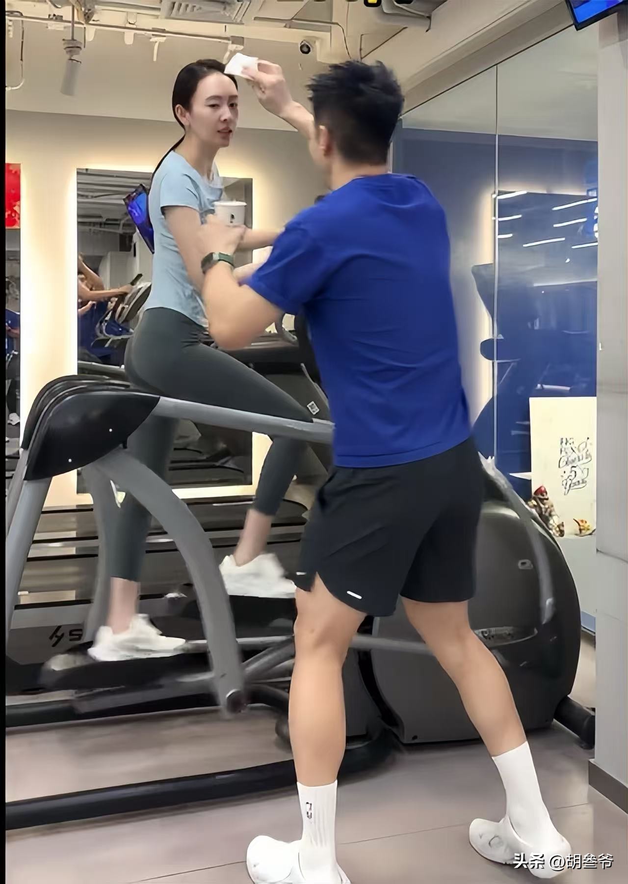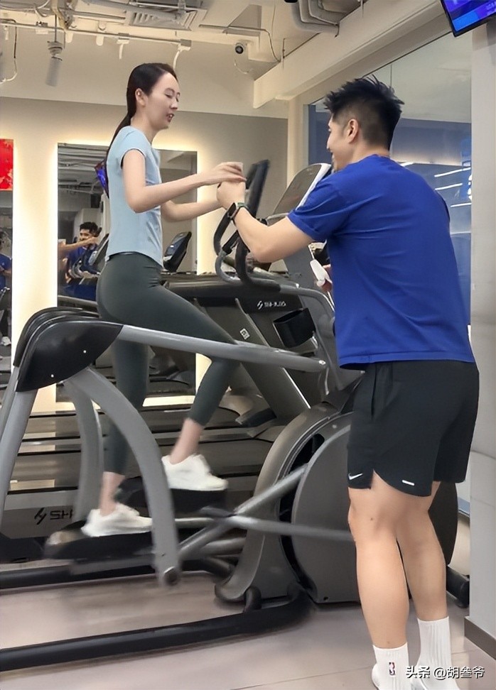 健身过程中,有帅气男教练全程陪同,不仅贴心为她擦汗、递水。
