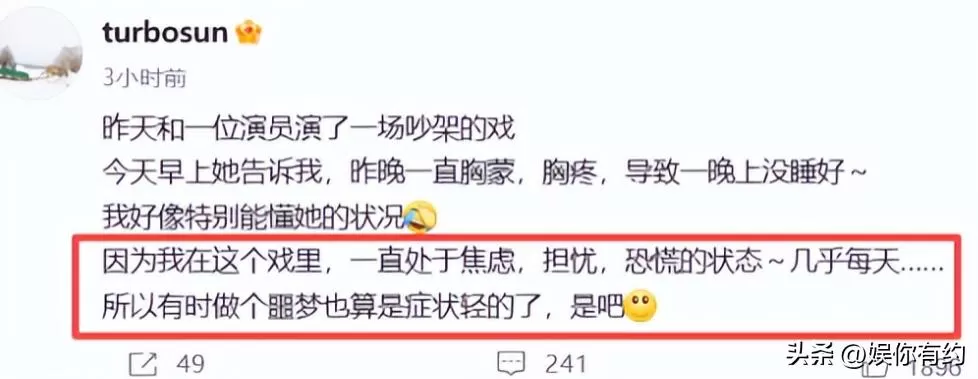 “自己拍戏时,几乎每天处于焦虑、担忧、恐慌的状态,连做噩梦都算轻的。”