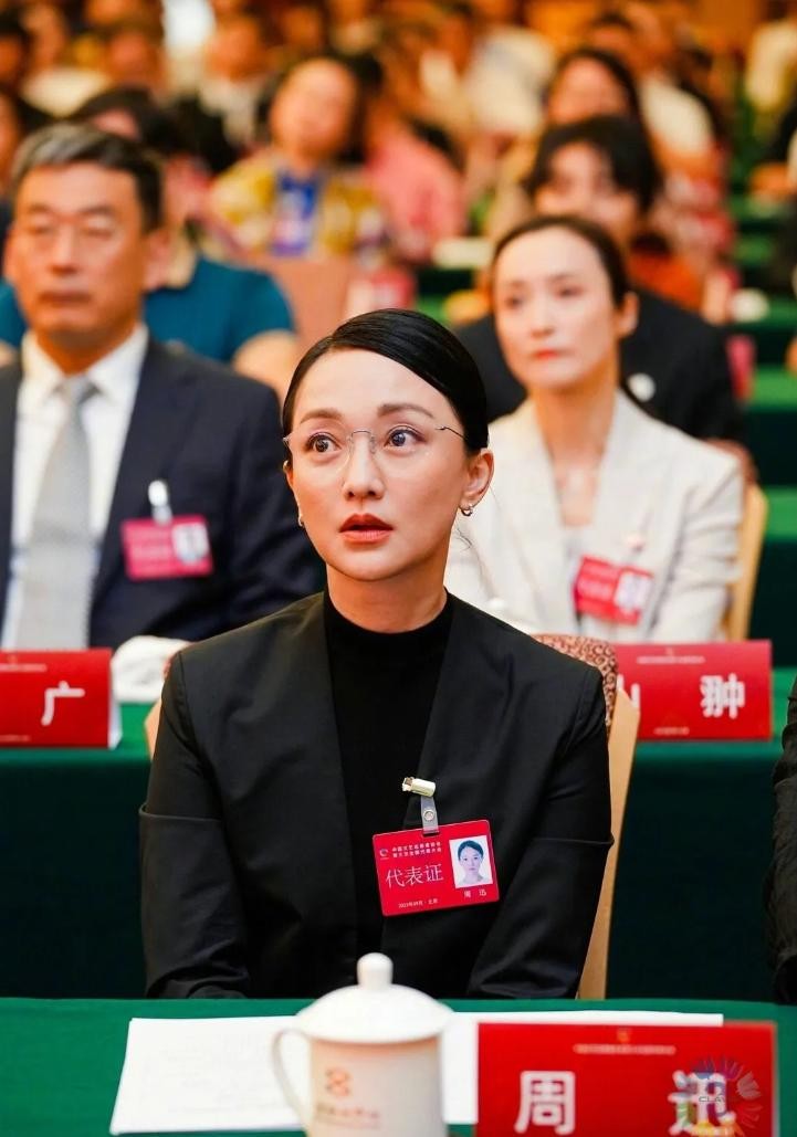 再看发型,周迅将头发一丝不苟地盘成一个低发髻,露出了饱满的额头和清晰的五官轮廓,这种发型既显得干练利落,又不失女性的温婉,戴上一副细框眼镜,更是为她增添了几分知性与专业,瞬间化身 “职场精英”,避免了过多装饰带来的繁杂,保持了高级感。