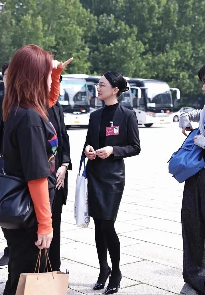 下装的黑色皮质包臀裙,则是打破沉闷的关键。皮质面料自带一种冷冽的时髦感,与西装的正式感形成了有趣的碰撞。包臀的版型精准贴合臀部线条,不会过于暴露,能凸显女性的曲线美,让整体造型在专业之外多了几分女人味。而最点睛的一笔,就是搭配的黑色丝袜,很多人觉得丝袜是俗气的代名词,但周迅用实际行动证明,只要选对了款式和搭配,丝袜也能成为职场时髦的利器。她选择的是厚度适中的黑色丝袜,可以修饰腿部线条,让双腿看起来更加纤细修长,并且与皮质裙的酷飒、西装的挺括形成了材质上的对比,让整个下半身的造型层次更加丰富,时髦感瞬间拉满。