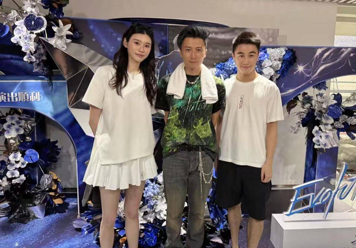何猷君同样选择了一身白色,上身是休闲的白色T恤,下面则是时尚的黑色短裤,两人仿佛默契十足地穿上了“情侣装”,越发显得恩爱,和谐的夫妻相愈加明显。不得不提的是,何猷君的颜值也相当不俗,白皙少年感十足,他与谢霆锋站在一起毫不逊色。在舞台中央的谢霆锋,刚刚结束表演,脖子上围着的毛巾别具一格,镜头前尤为吸引眼球。