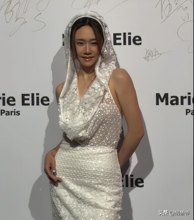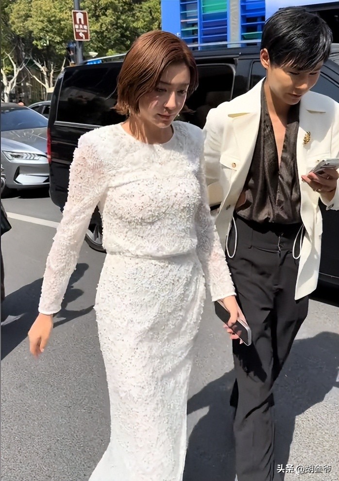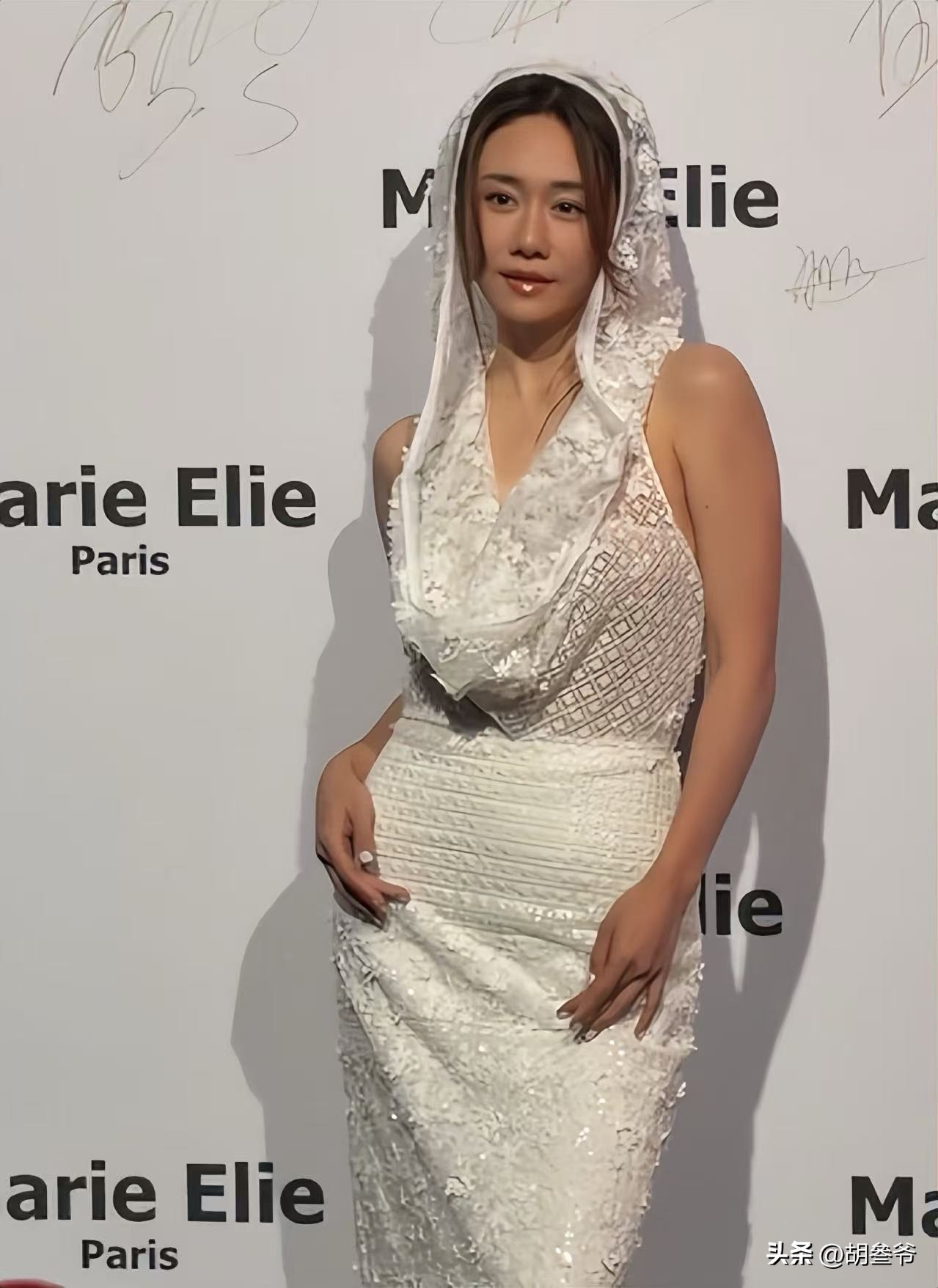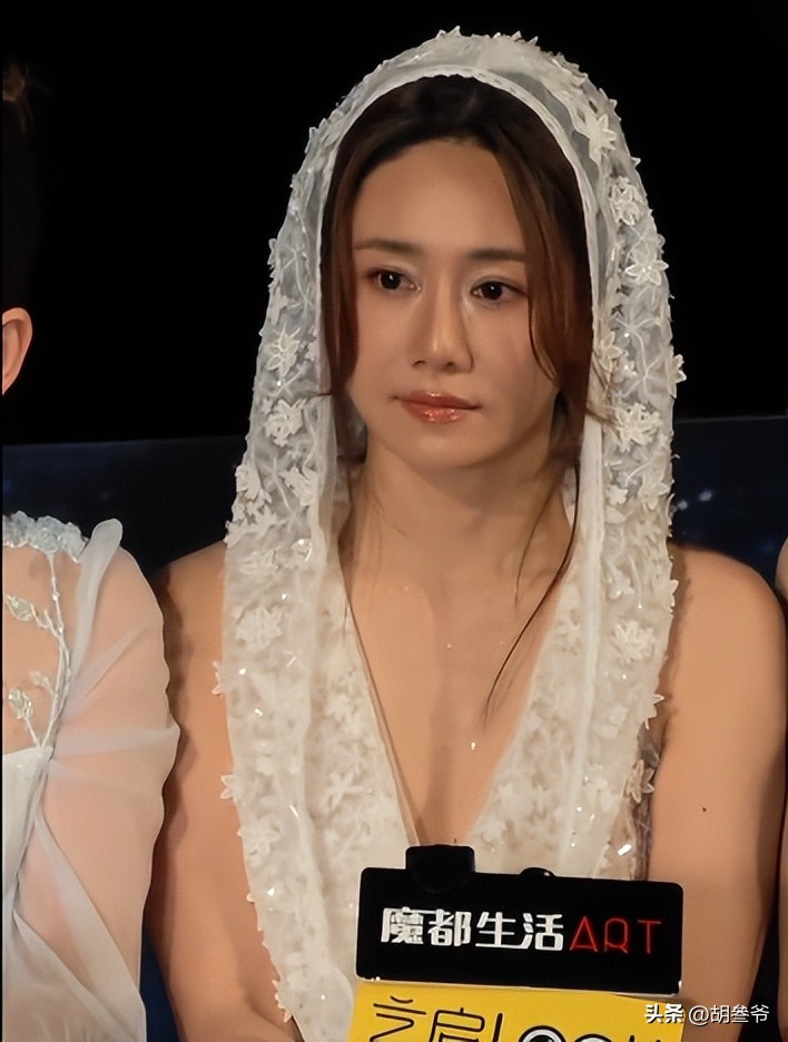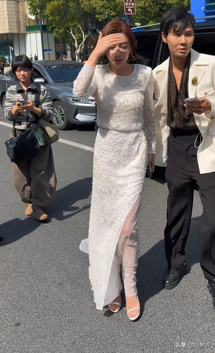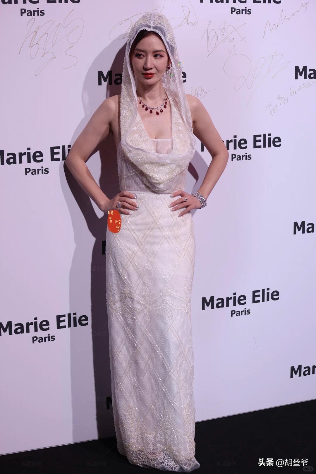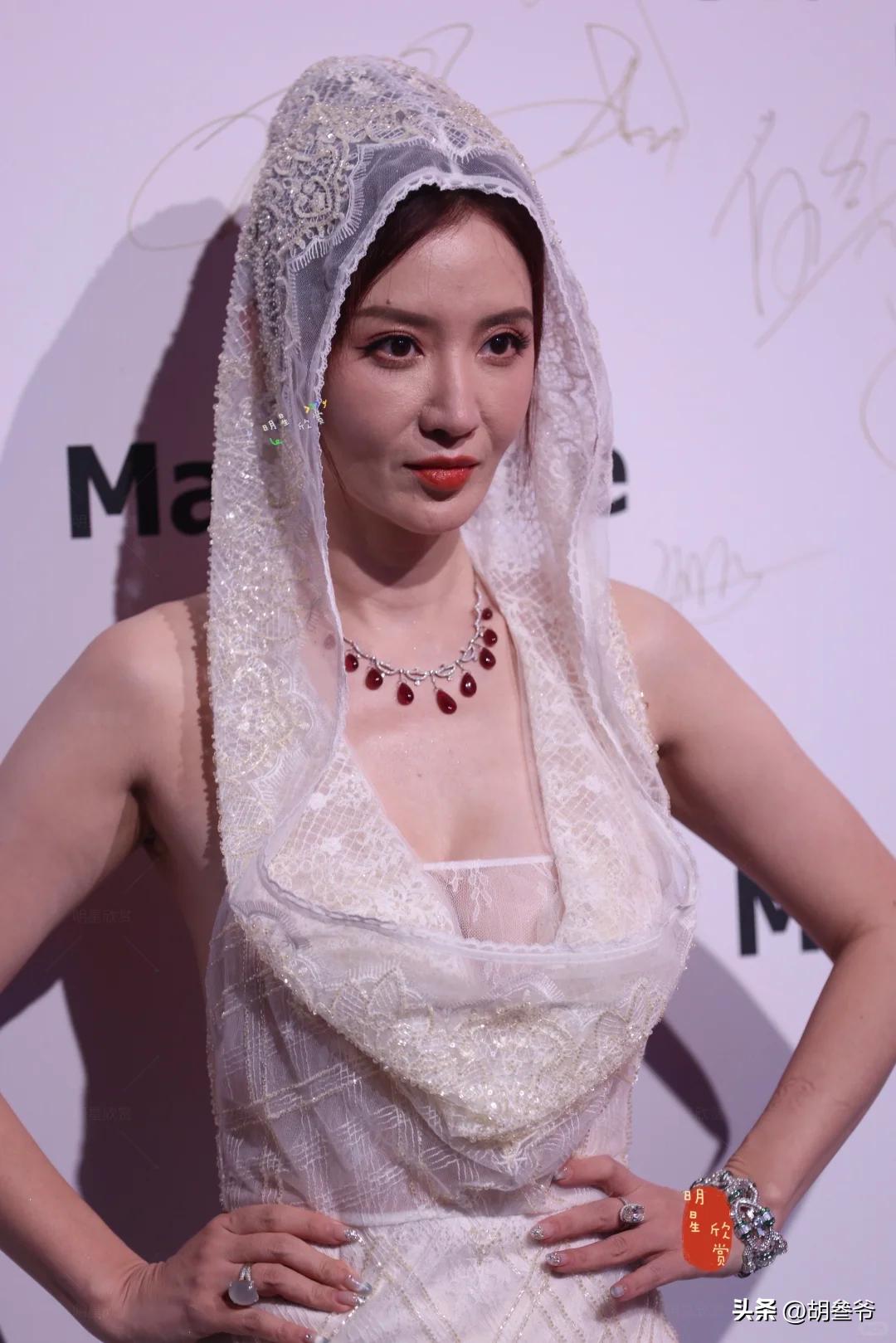 刘芸这次的造型算是彻底栽了,她选的白色挂脖蕾丝镶钻连衣裙。