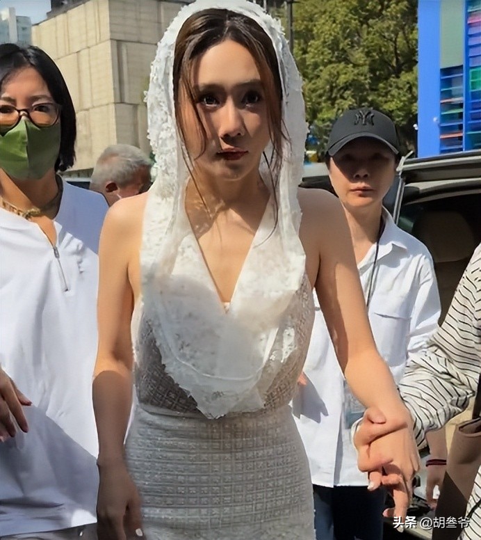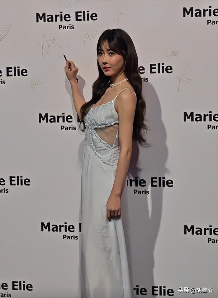 宣璐算是现场最特殊的一个,别人都穿蕾丝裙赶潮流,她却选了一身淡蓝色真丝吊带裙,瞬间和现场的时尚氛围格格不入。