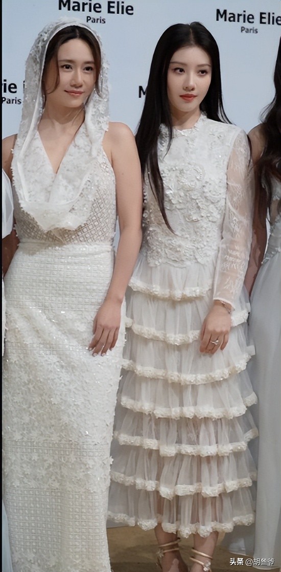 她和刘芸的礼服款式相近,却摒弃了刘海,露出了完整的脸部线条和修长的脖颈,整个人看着清爽又大气。