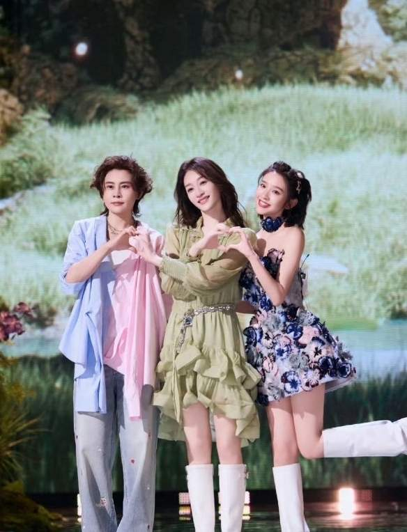三人同框,薄荷绿纱裙、蓝紫羽毛裙、甜妹造型,颜值美到发光,可一开口全破功。手势舞生涩像幼儿园汇演,节奏混乱却不怯场。网友调侃:“静音观看更佳,开音量爆笑”,这 “不假唱、不做作、不好听” 的真实,比完美舞台更圈粉!
