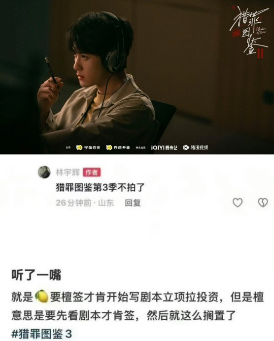 《猎罪图鉴》第二季的口碑滑坡(豆瓣评分从第一季7.6降至6.5)引发观众对第三季剧本质量的深度反思,也直接导致主演檀健次与制作方因创作理念分歧陷入项目僵局。