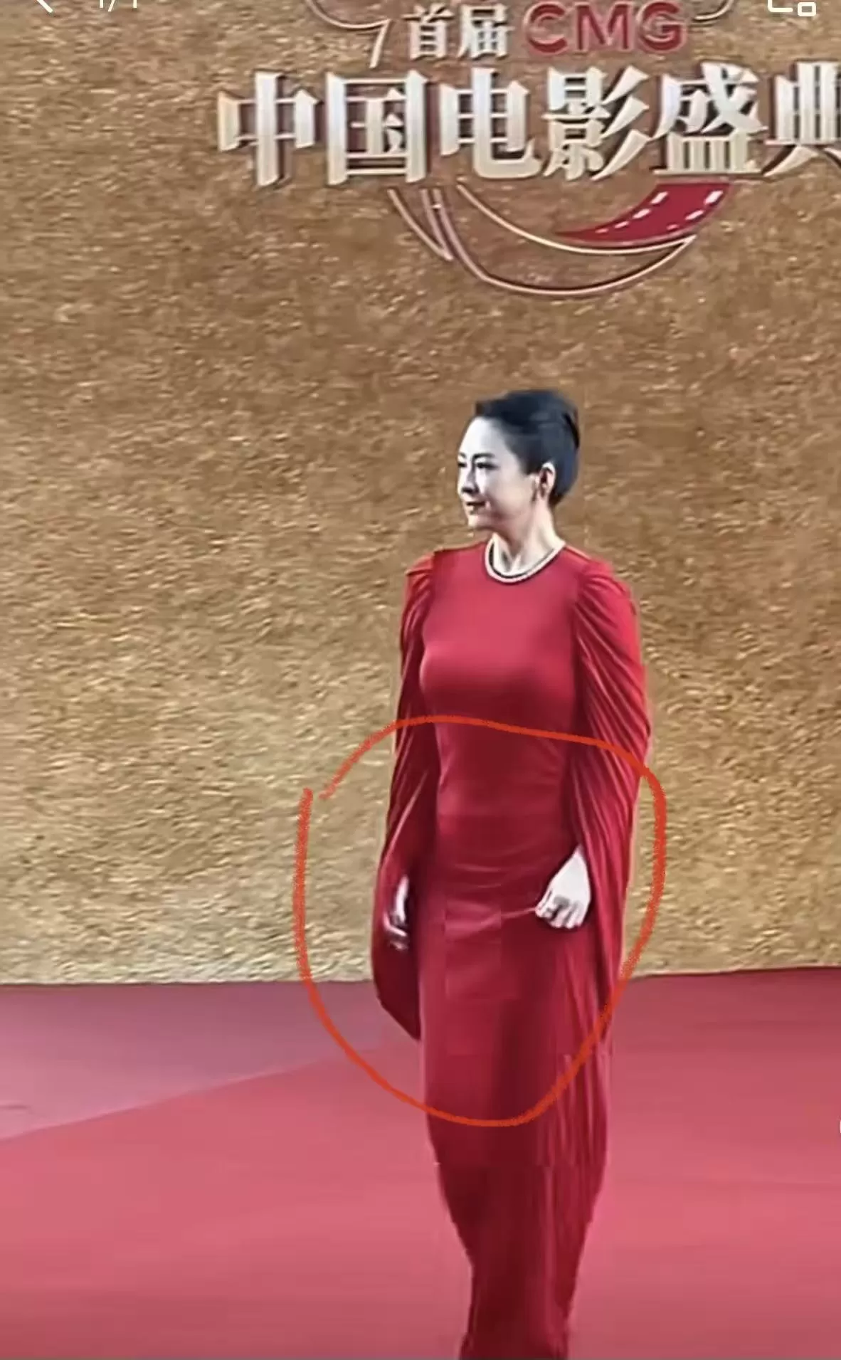 章子怡走红毯,穿了一条大红色的长裙,大肚腩突出,虎腰熊背的震惊了不少人。这次的服装选的就很失败,显年龄不说,还让她更加显胖。